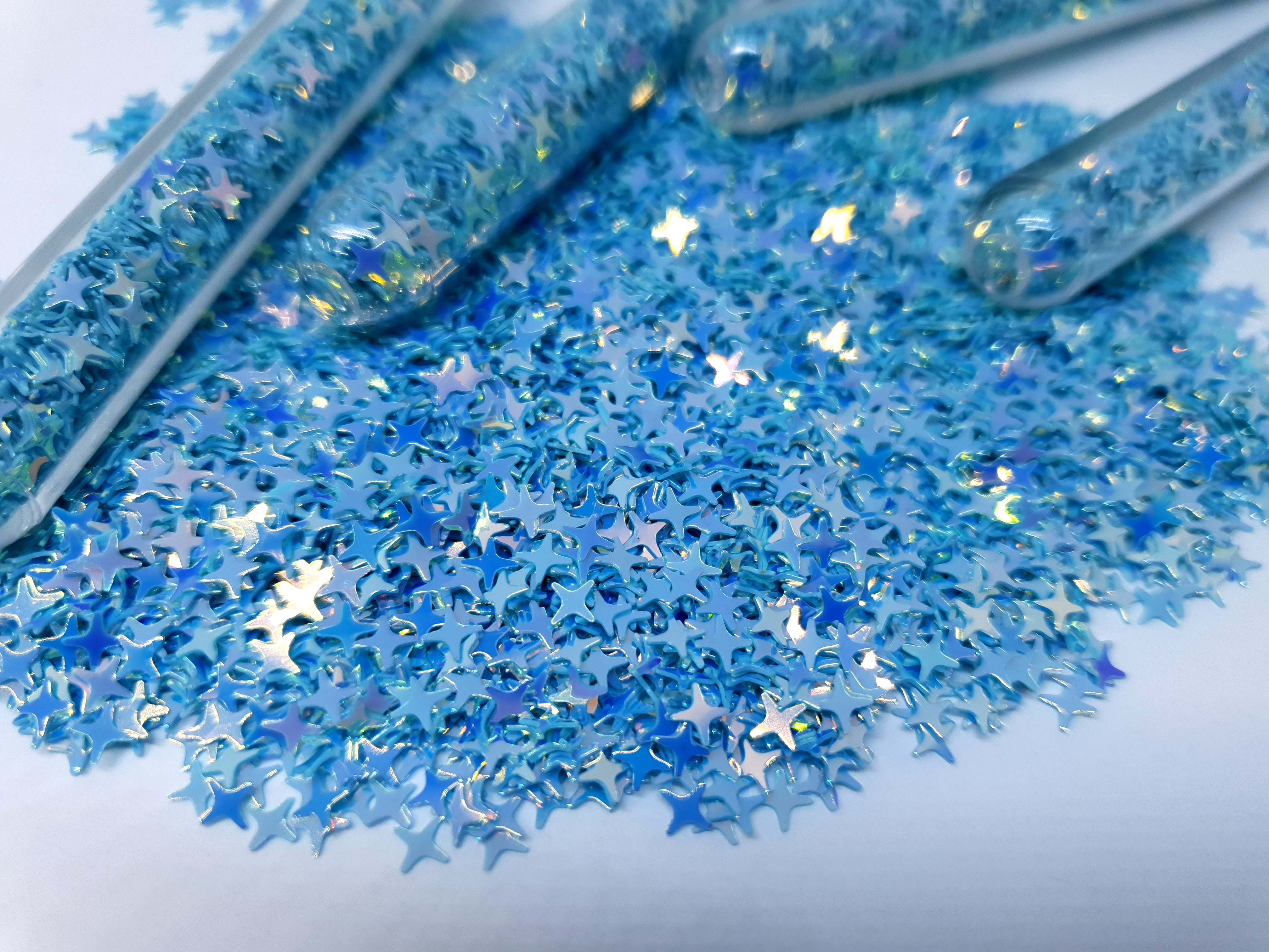Iridescent Blue Glitter Stars