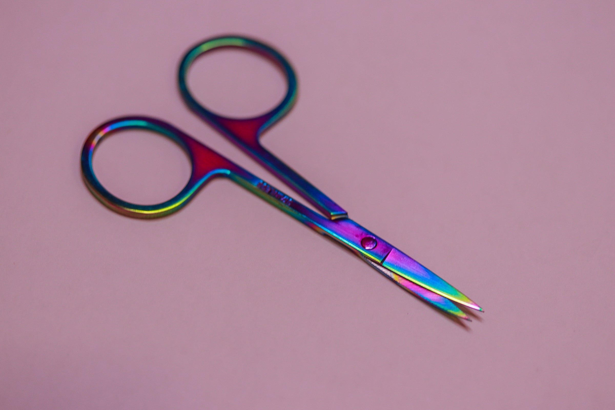 Metal iridescent nail scissors, these are curved